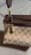Stylish Gucci women's bag in brown with green accents. Perfect for any occasion. Has alittle tear where straps attached that’s why selling so cheap not real noticeable at all