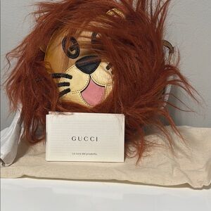 This Gucci bag features a vibrant blend of brown and yellow, offering a playful yet sophisticated look. Its unique design makes it a standout accessory, perfect for adding a touch of luxury to any ensemble.