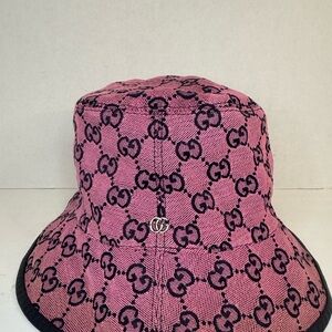 Gucci Bucket Hat GG Monogram Unisex Pink Color Size Medium.