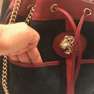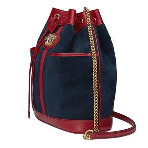 Gucci Bucket Rajah Medium Suede Hobo Bag in Blue NEW WITH DUST BAG