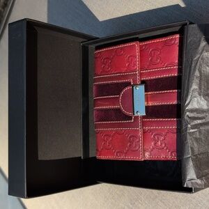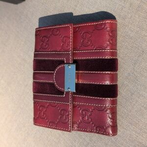 Gucci Burgundy Red Leather & Velvet GG Monogram Bifold Wallet With Box