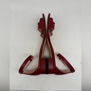 Gucci Burgundy red leather Horsebit ankle strap peep toe low heel sandals EU 38.5