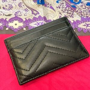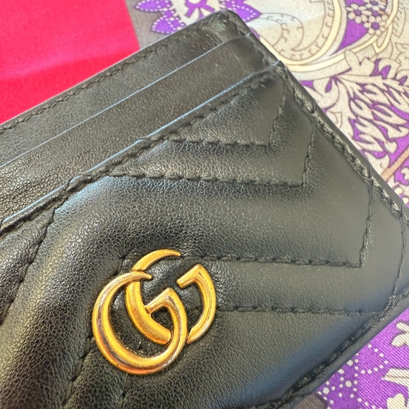 Gucci CC Black Cowhide Holder w Gold GG Hardware Card Case