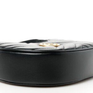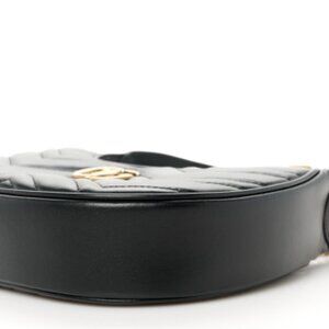 Gucci Calfskin Matelasse Chevron Mini GG Marmont Half Moon Hobo Black