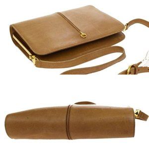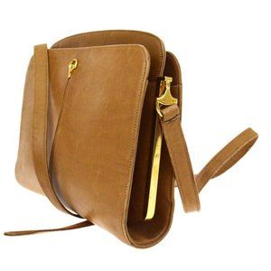 For sale is a Gucci, RARE, camel shade of brown buttery soft leather, shoulder bag or cross body purse with a horse-bit/equestrian accent in gold on both sides that are connected by a dark brown, stitched design with a concave strip from front to back!
