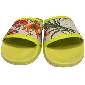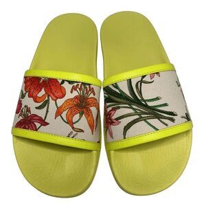 Gucci Canvas Flora Print Slide Sandal EU 36.5 US 6.5 Fluorescent Neon Yellow