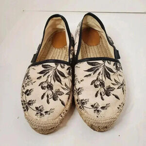 Gorgeous Gucci espadrilles in a beautiful floral print in beige and black tones. Match with an elegant dress or go for a casually chic look with some jeans.