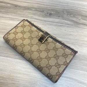 Gucci Canvas Long Wallet- Rare Brown Wood Magnet Clasp Vintage Monogram