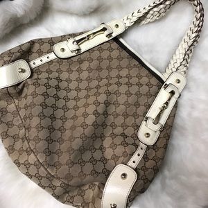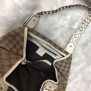 🤍 Gucci Canvas w Cream Braided Leather Hobo LG🤍