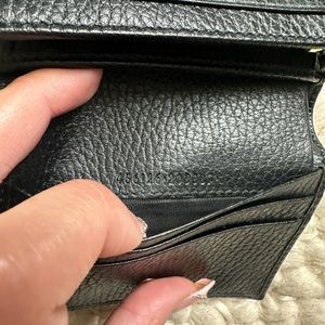 100% authentic. Black bi-fold wallet. 5 card slots, 1 bill compartment, interior zipper pocket. Snap closure. Made in Italy.