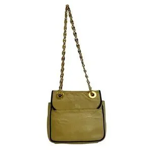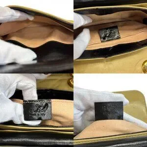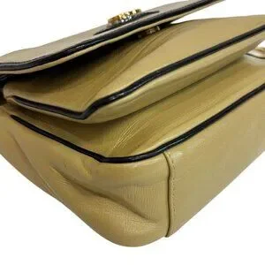 Gucci Chain Flap Interlocking Shoulder Bag Purse Beige Black