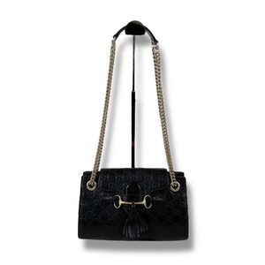 Gucci Chain Mini Shoulder Bag Emily Shima Leather Black 2way Tassel
