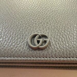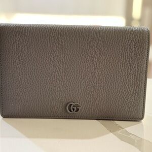 Gucci wallet in charcoal leather. Great condition. Features signature GG emblem.