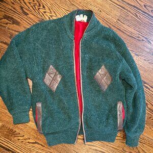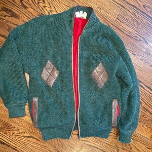 Gucci Chunky Rib Knit Green with Leather Accents Sweater, Men's XL, Vintage