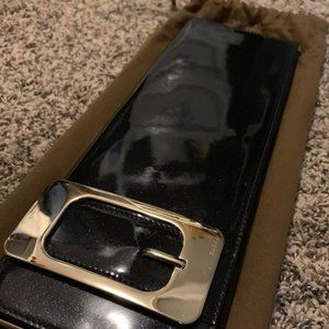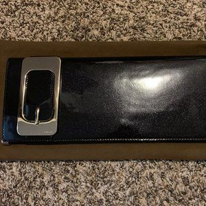 Beautiful bag! Black with slight sparkle & large logo. Velvet like interior and magnetic snap closure. 100% authentic.