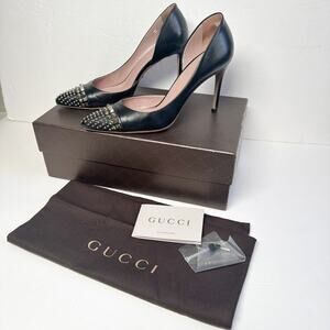 Gucci Coline 100 Black Studded Pumps 37.5 with Box & Dust Bag