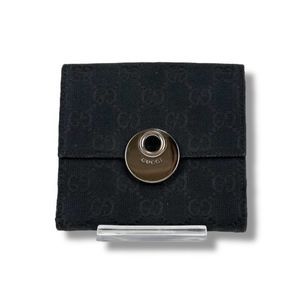 Gucci Compact Wallet Bifold Wallet Black GG Canvas GG Pattern