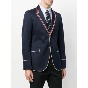 🔴 Gucci Contrast Piping Blazer Jacket Coat - Navy Blue 46