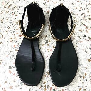 Gucci Coraline Black Suede Thong with gold bamboo detail Sandals size 35.5