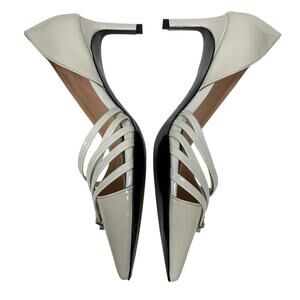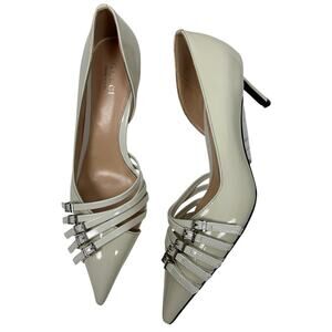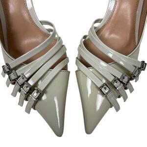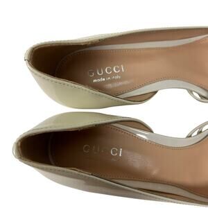 Gucci Cream Patent Leather Strappy Buckle Pointed Toe Kitten Heels New In Box 9