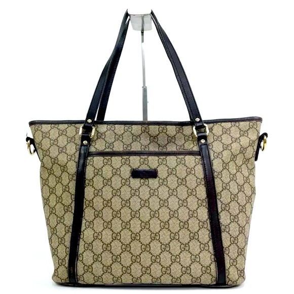 Gucci Cream and Black Monogram 2 Way Tote