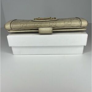💜Gucci Cream/Beige Guccissima Gold Heart Snap Long Wallet | PRELOVED💜