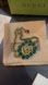 💛💚❤️Antique gold-tone double G station bracelet featuring dark green crystal embellishments and red charm❤️💚💛
