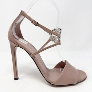 Gucci Leather Crystal Embellished GG Interlocking Sandals Heels