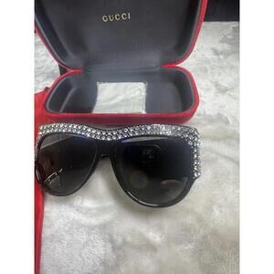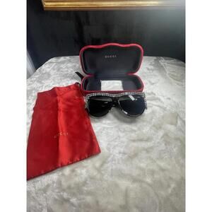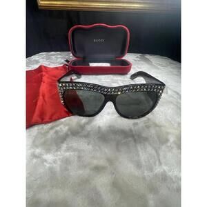 The Gucci Crystal Oversize Sunglasses are a luxurious and stylish accessory for women, perfect for adding a touch of designer flair to any outfit. Made in Italy, these sunglasses feature a sleek black frame with oversized lenses that offer both fashion and function. The gradient lens technology adds a modern touch, making these sunglasses a must-have for any fashion-forward individual looking to make a statement.