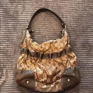 Gucci Crystal Tan & Dark Brown Monogram Hobo Shoulder Bag