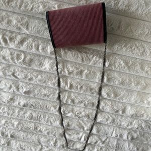 Gorgeous pink corduroy with navy blue leather trim and gunmetal hardware. Excellent condition, lightly worn. Comes with dust bag and box
