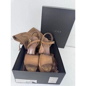 Gucci Danielle Suede Platform Sandal, Brick authentic brown straps shoes sz 37