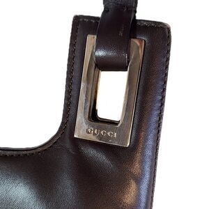 Gucci - Dark Brown Structured Leather & Silver Accent Vintage Shoulder Bag VGUC