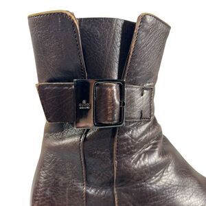Gucci Dark Brown Leather Ankle Boots Vintage (35.5 IT) Authentic Square Toe Sz 5