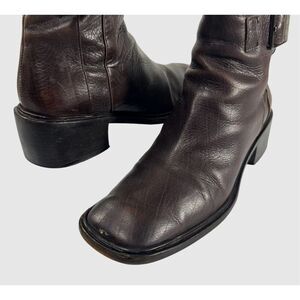 Gucci Dark Brown Leather Ankle Boots Vintage (35.5 IT) Authentic Square Toe Sz 5.5