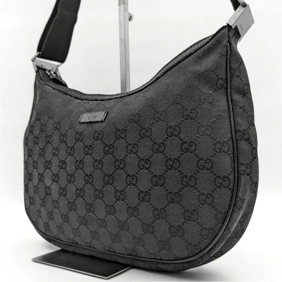 Chic Gucci shoulder bag with iconic monogram pattern. Sleek design for versatile style.
