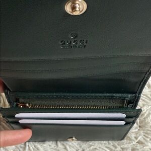Chic Gucci wallet in dark green buttery super soft leather. Features quilted design and iconic logo. I just used it couple of times but i needed a bigger wallet. Bought it in Milan in December 2025, it is one of the newest colors. Have the receipt upon request. Comes with the box, dust bag, ribbon. Sells for $580 on Gucci web site