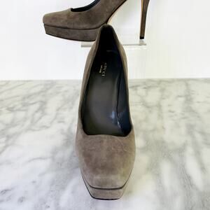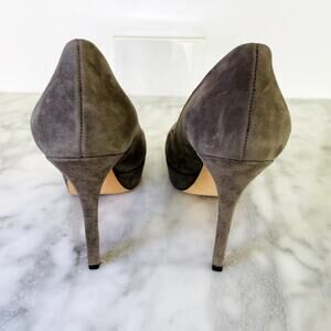 Gucci Dark Grey Suede Platform Heel 39.5 NEW Square Toe Work Casual 4.5" 115mm Heel