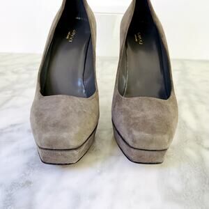 Gucci Dark Grey Suede Platform Heel 39.5 NEW Square Toe Work Casual 4.5" 115mm