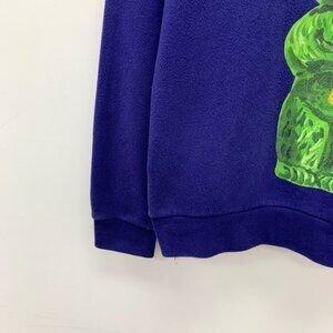 Dark blue cotton long-sleeve crewneck sweatshirt with logo lettering and teddy bear print