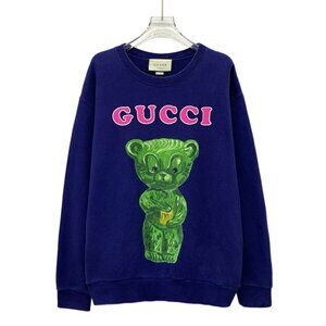 Gucci Dark blue cotton long-sleeve crewneck sweatshirt