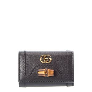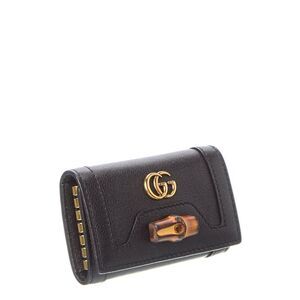 About the brand: Eclectic and coveted. Italian luxury redefined. Made in Italy Diana Leather Key Holder in black leather and light fine gold hardware with interlocking G logo accent and bamboo detail Interior design details: leather lining, key clips Measures 3.75in wide x 2.5in high x 1.25in deep Fold-over flap with snap closure Please note: All measurements were taken by hand and are approximate; slight variations may occur. Our products are 100% genuine. In some cases we purchase merchandise from trusted independent suppliers and not directly from the brand owner. In all cases we stand by the authenticity of every product sold on our site.
