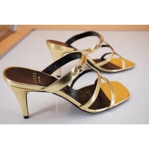 GUCCI DIVINE GOLD SILVER STRAPPY METALLIC SANDALS SIZE 37 NIB $920 LOGO BIT CAGE