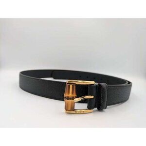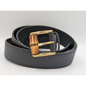 Gucci Dollar Pigprint Leather Bamboo W3.0cm Belt Black 110cm 699954