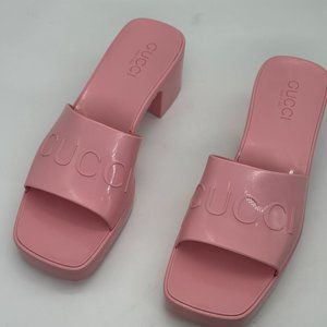 Gucci Double GG Logo Rubber Platform Block Heel Mules Slides Sandals Shoes