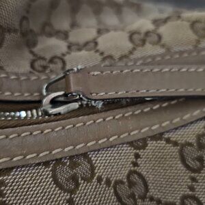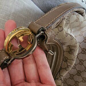 Outside: Good. Has 1 spot (see pictures attached) and metal GG normal wear and tear.