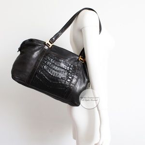 Gucci Duffle Bag Black Crocodile and Kid Leather Large Hobo Vintage 1984 + COA