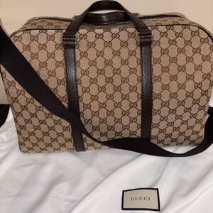 * Gucci GG Duffle.1 Internal Zipper Pocket. 1 Internal Open Pocket. Silver Hardware. Beige/Brown.