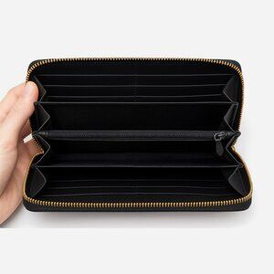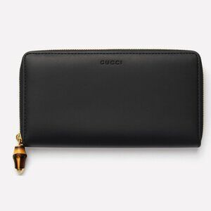 Gucci EUC Bamboo Zip Around Wallet in Matte Black Calfskin