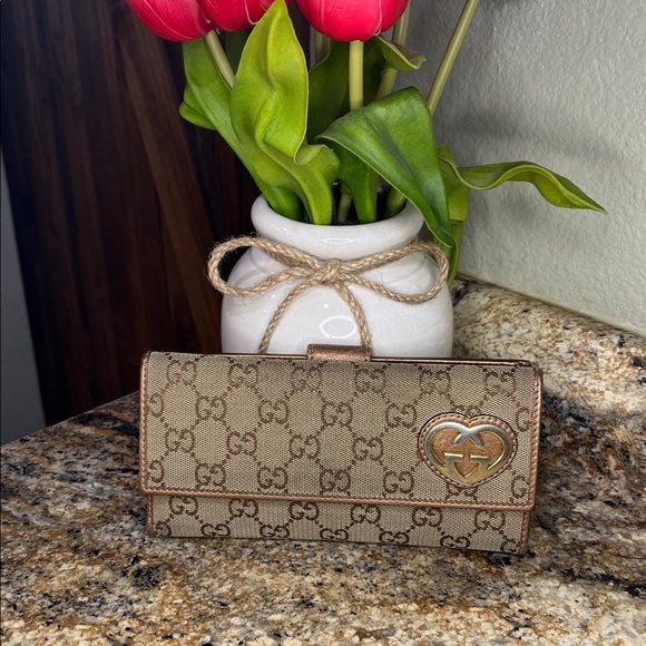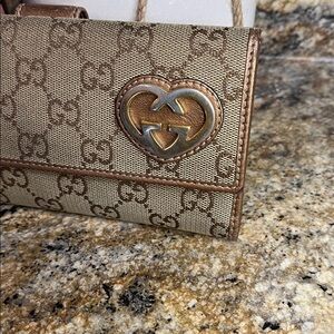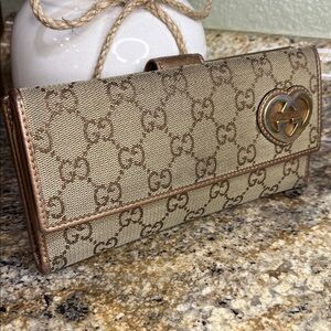 Gucci EUC Monogram Lovely Heart Continental Canvas Wallet